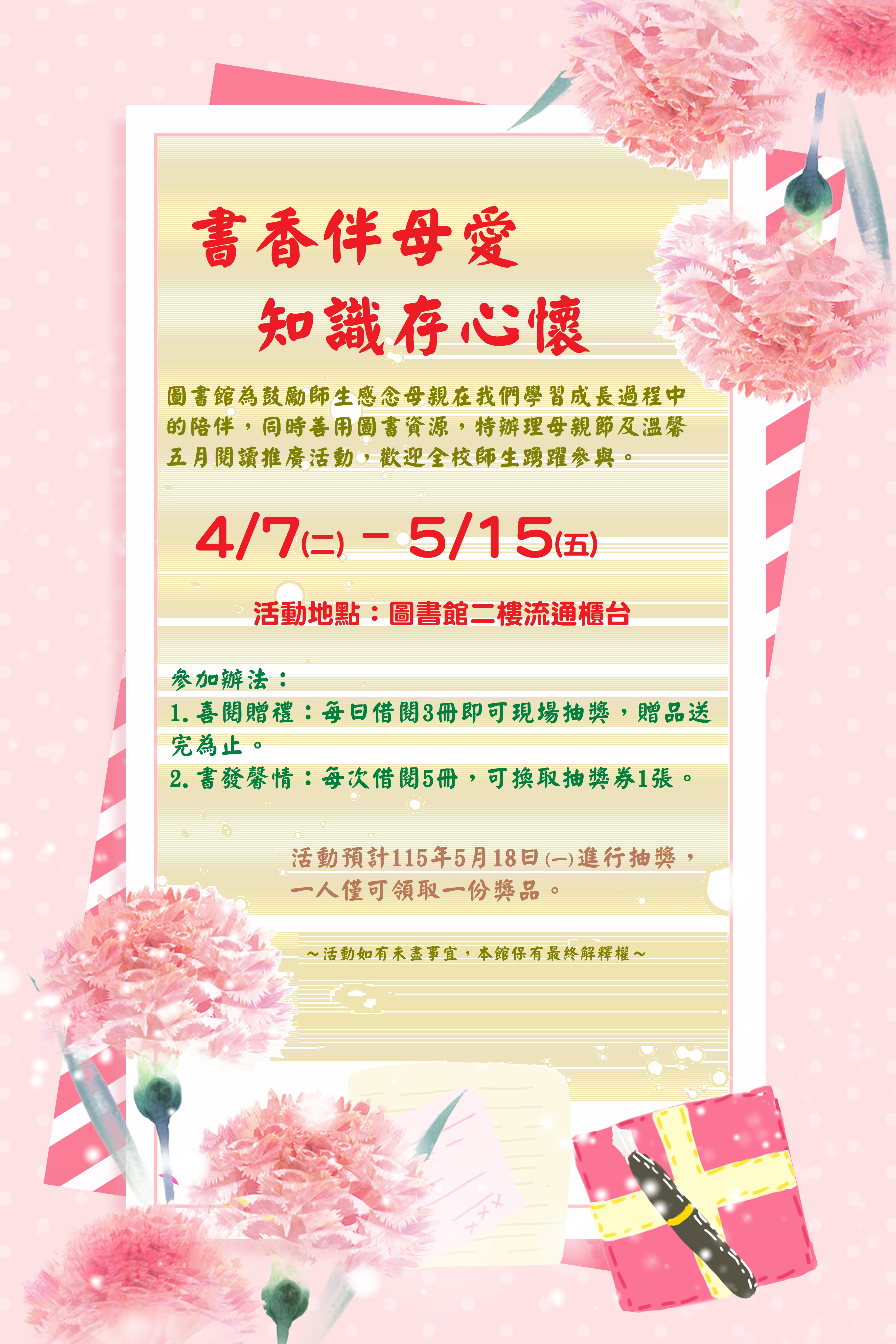 ─ 圖書館舉辦母親節閱讀推廣活動，歡迎師生踴躍參加!</title>